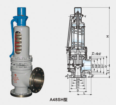 A48SH-64~1160型適用于工作溫度落≤425℃,A48SH-64I型適用于工作溫度≤510℃,M A48SH-100V~160V型適用于工作溫度≤550℃的蒸汽等介質的設備和管路上,作為超壓保護裝置。